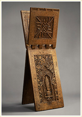 Wood, carved and inlaid |